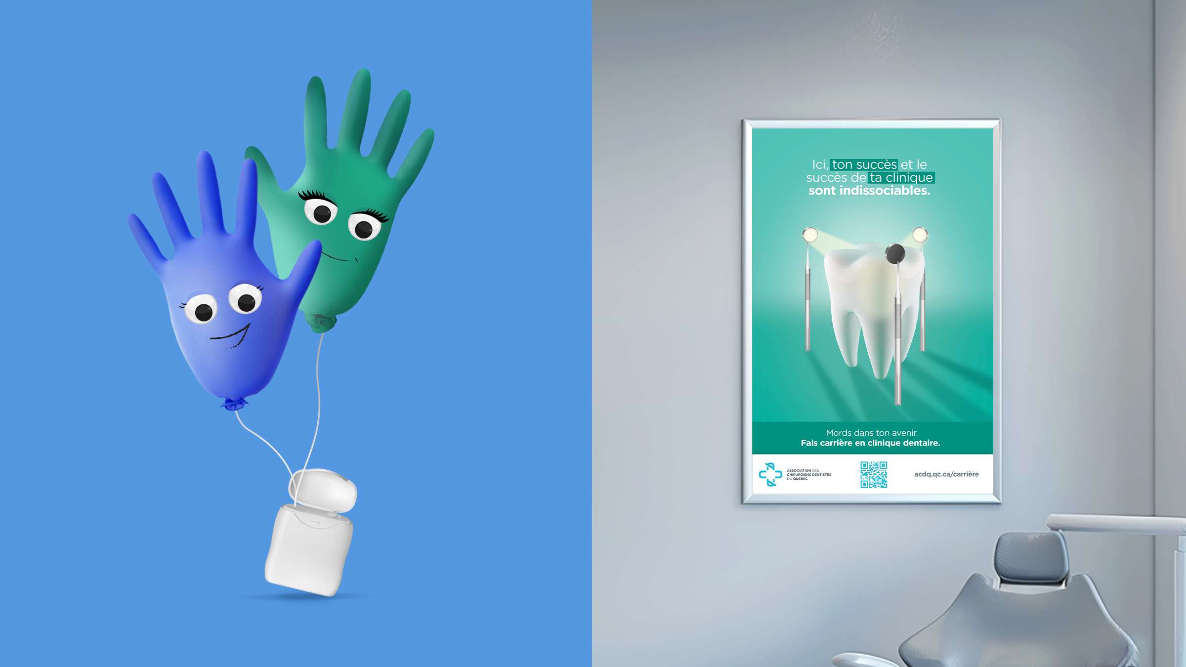 L’Association des chirurgiens dentistes du Québec (ACDQ) regroupe plus de 200 cliniques membres au Québec. Elle vise à défendre les intérêts de ses membres et est reconnue comme le leader avant-gardiste du milieu dentaire. L’ACDQ s’est interrogé sur la façon d’actualiser la perception de la population sur le domaine dentaire et ses possibilités de carrière, dû à la difficulté des cliniques membres de recruter du personnel pour des postes clés (secrétaire et hygiéniste dentaire, notamment).