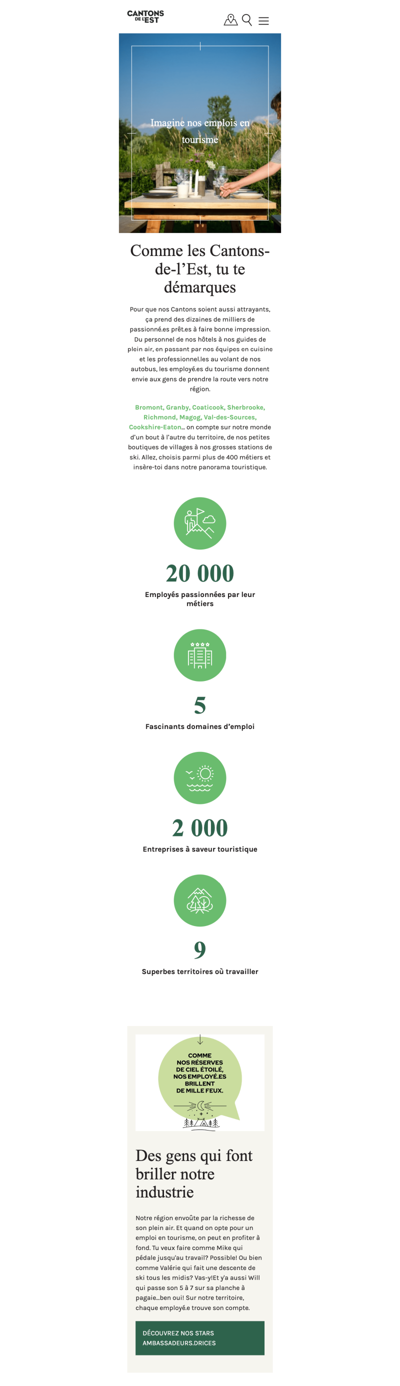 L’industrie du tourisme dans les Cantons de l’Est c’est plus de 20 000 emplois, dans près de 2 000 compagnies dans des secteurs variés tel que la restauration et le divertissement. C’est un secteur offrant un vaste éventail de métiers et de parcours professionnels pour mettre en lumière ses employé.es.